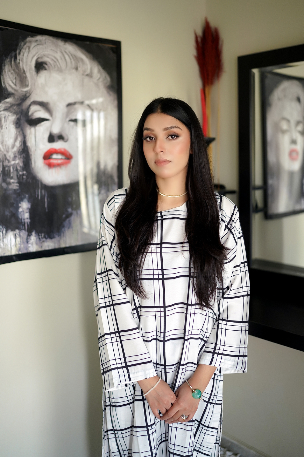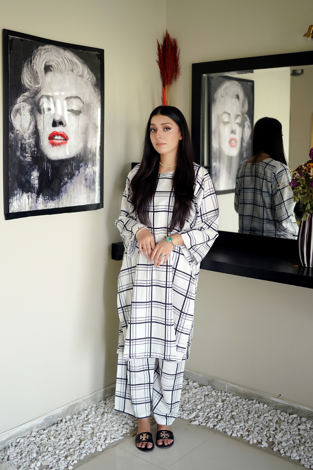 Redefine elegance with our Aztec Two-Piece Suit, designed in premium Poly Lawn fabric for an ultra-soft and breathable feel. The sleek black-and-white checkered digital print adds a timeless charm to this contemporary outfit. Made from Poly Lawn, this set offers comfort, durability, and effortless grace, making it a must-have for casual and semi-formal occasions. Its flowy silhouette ensures ease of movement while maintaining a refined look. Pair with minimalist accessories for a chic and sophisticated statement!
