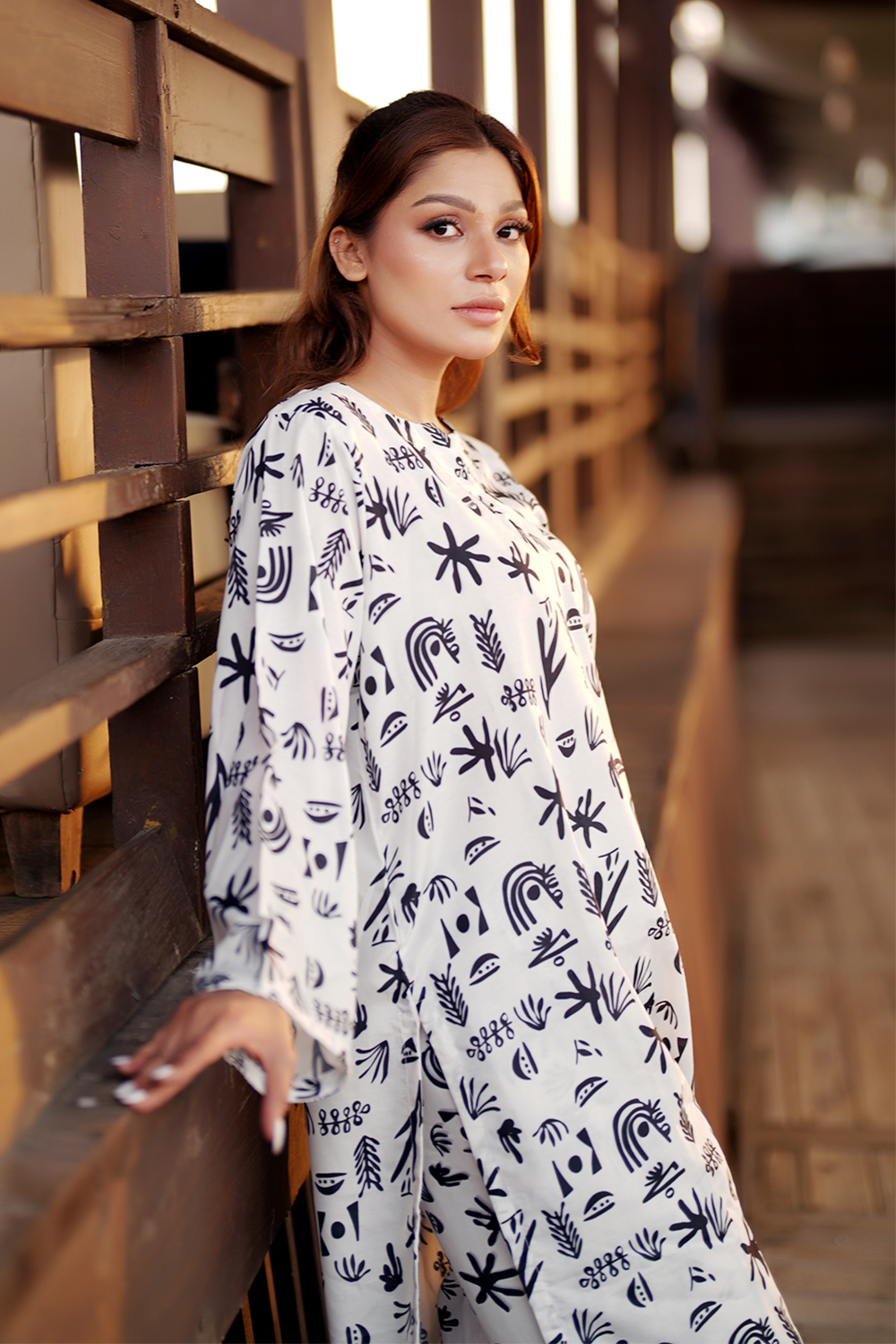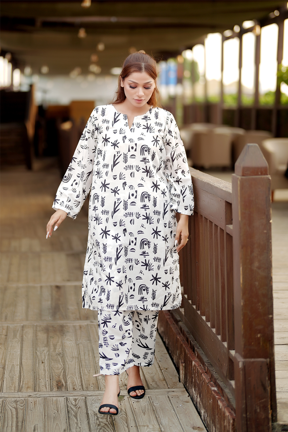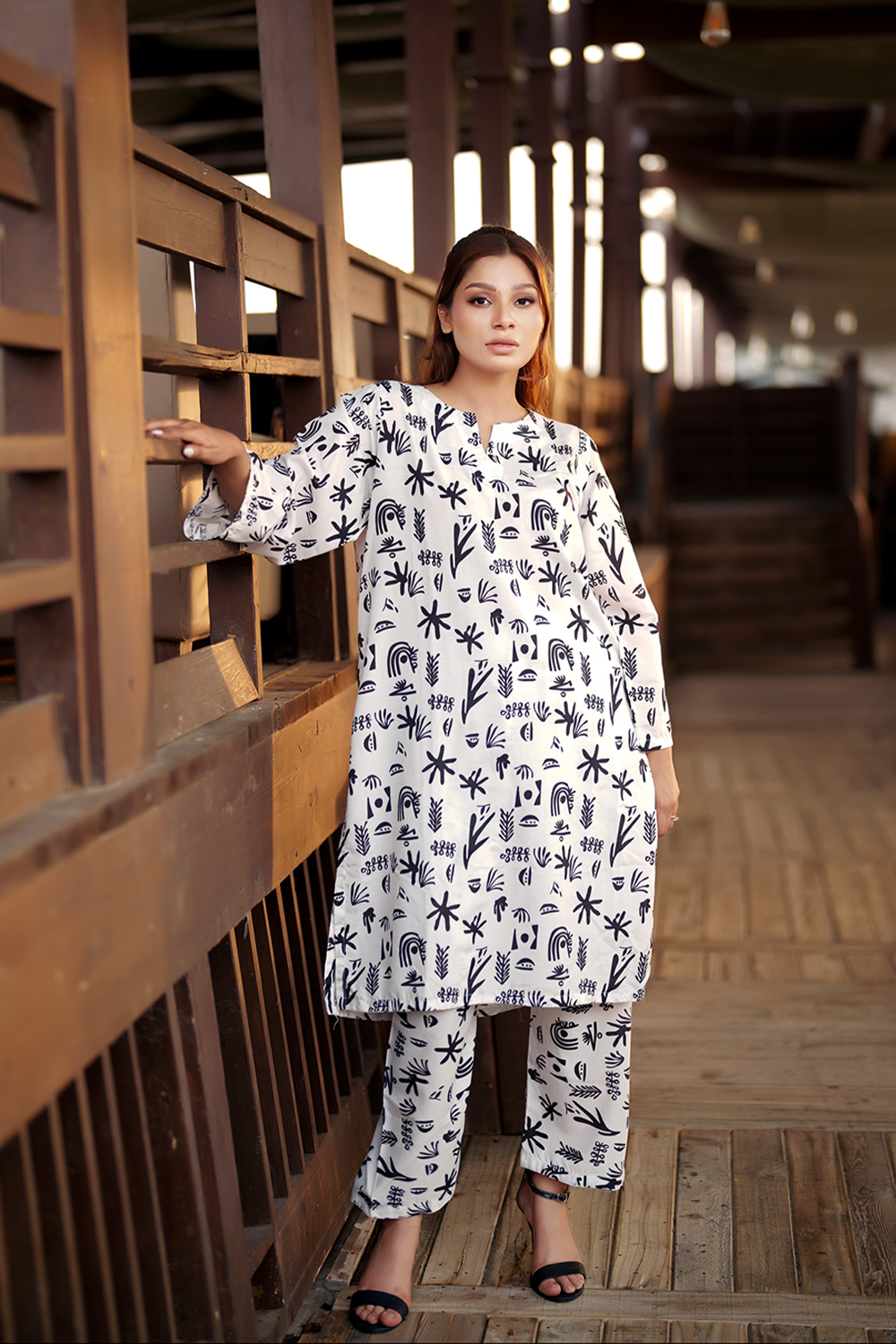 Elevate your wardrobe with Pakeezah, a striking two-piece suit crafted from Poly Lawn for a soft and breathable feel. The Poly lawn fabric ensures comfort and durability, making it perfect for everyday wear. Featuring a bold digital print in black and white, this outfit embodies modern elegance with an artistic touch. Its effortless silhouette and minimalistic design create a timeless look, perfect for any occasion.